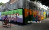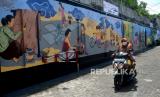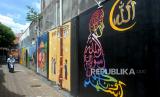 Lukisan mural di dinding gang masuk Kampung Cokrokusuman, Jetis, Yogyakarta, Senin (21/3/2022). Lukisan karya seniman Kampung Cokrokusuman ini menambah semarak suasana kampung. Lukisan ini digarap dengan dana swadaya warga setempat. Diharapkan bisa menjadi hiburan warga dan ikon kampung Cokrokusuman. (FOTO : Wihdan Hidayat / Republika)