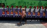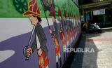 Lukisan mural pasukan bregada menghiasi dinding gang masuk Kampung Cokrokusuman, Jetis, Yogyakarta, Senin (21/3/2022). Lukisan karya seniman Kampung Cokrokusuman ini menambah semarak suasana kampung. Lukisan ini digarap dengan dana swadaya warga setempat. Diharapkan bisa menjadi hiburan warga dan ikon kampung Cokrokusuman. (FOTO : Wihdan Hidayat / Republika)