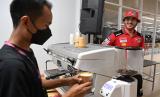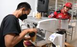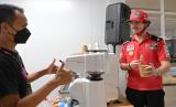REPUBLIKA.CO.ID,LOMBOK TENGAH -- Pembalap Ducati Lenovo Team Francesco Bagnaia (kanan) memerhatikan barista Sedjiwa Kopi meracik kopi pesanannya di media center usai balapan MotoGP seri Pertamina Grand Prix of Indonesia di Pertamina Mandalika International Street Circuit, Lombok Tengah, NTB, Ahad (20/3/2022) malam.