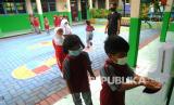 REPUBLIKA.CO.ID,BOGOR -- Sejumlah siswa mencuci tangannya dengan cairan pembersih usai mengikuti pelajaran olahraga saat Pembelajaran Tatap Muka (PTM) Terbatas di SDN 2 Loji, Kota Bogor, Jawa Barat, Senin (21/3/2022).