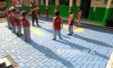 Sejumlah siswa mengikuti pelajaran olahraga saat Pembelajaran Tatap Muka (PTM) Terbatas di SDN 2 Loji, Kota Bogor, Jawa Barat, Senin (21/3/2022). Pemerintah Kota Bogor kembali menerapkan PTM Terbatas untuk semua jenjang pendidikan dengan siswa yang hadir maksimal sebanyak 50 persen dari kapasitas kelas di masa pelonggaran PPKM level 2. (FOTO : Antara/Arif Firmansyah)