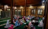 REPUBLIKA.CO.ID, LOMBOK -- Anak mengaji di Masjid Nur Syahada di kampung Sade, Desa Rembitan, Lombok Tengah, NTB, Senin (21/3/2022). Masjid tersebut memiliki arsitektur khas rumah adat kampung Sade dengan bangunan yang didominasi oleh kayu dan bambu serta memiliki atap dari alang-alang.