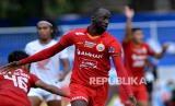 Pesepak bola Persija Jakarta Makan Konate (tengah) berselebrasi usai mencetak gol ke gawang PSM Makassar saat pertandingan Liga 1 di Stadion I Gusti Ngurah Rai, Denpasar, Bali, Senin (21/3/2022). Persija Jakarta mengalahkan PSM Makassar dengan skor 3-1. (FOTO : Antara/Fikri Yusuf)