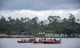 Wisatawan beraktivitas menggunakan perahu karet di kawasan wisata Situ Cileunca, Pangalengan, Kabupaten Bandung, Selasa (22/3/2022). Pemerintah Provinsi Jawa Barat terus menggenjot pengembangan destinasi dan infrastruktur sektor pariwisata guna mencapai target 36 hingga 40 juta kunjungan wisatawan di tahun 2022. Hal tersebut sebagai salah satu upaya pemulihan ekonomi Jawa Barat akibat dampak pandemi Covid-19. (FOTO : REPUBLIKA/ABDAN SYAKURA)