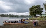 Wisatawan berjalan menuju perahu di kawasan wisata Situ Cileunca, Pangalengan, Kabupaten Bandung, Selasa (22/3/2022). Pemerintah Provinsi Jawa Barat terus menggenjot pengembangan destinasi dan infrastruktur sektor pariwisata guna mencapai target 36 hingga 40 juta kunjungan wisatawan di tahun 2022. Hal tersebut sebagai salah satu upaya pemulihan ekonomi Jawa Barat akibat dampak pandemi Covid-19. Foto: Republika/Abdan Syakura (FOTO : REPUBLIKA/ABDAN SYAKURA)