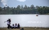 Wisatawan beraktivitas di kawasan wisata Situ Cileunca, Pangalengan, Kabupaten Bandung, Selasa (22/3/2022). Pemerintah Provinsi Jawa Barat terus menggenjot pengembangan destinasi dan infrastruktur sektor pariwisata guna mencapai target 36 hingga 40 juta kunjungan wisatawan di tahun 2022. Hal tersebut sebagai salah satu upaya pemulihan ekonomi Jawa Barat akibat dampak pandemi Covid-19. Foto: Republika/Abdan Syakura (FOTO : REPUBLIKA/ABDAN SYAKURA)