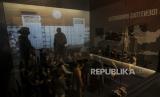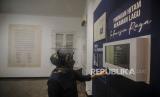 Pengunjung saat melihat pameran di Museum Sumpah Pemuda, Jakarta, Selasa (22/3/2022). Museum Sumpah Pemuda kembali dibuka pasca revitalisasi dengan menampilkan sejumlah perubahan dalam format penyajian informasi lebih interaktif ke dalam bentuk teknologi digital untuk menarik perhatian pengunjung khususnya kaum milenial. (FOTO : Republika/Putra M. Akbar)