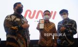 Direktur PT Mirae Asset Sekuritas Indonesia (MASI) Arisandhi Indrowisatio, CEO MASI Tae Yong Shim , Direktur MASI Daewoong An (dari kiri) saat melakukan pembaruan // (re-branding) platform investasi reksa dana NAVI di Jakarta, Selasa (22/3/2022). MASI menargetkan pertumbuhan asset under administration (AUA) reksa dana menjadi total Rp 1,5 triliun pada akhir 2022. Angka itu berarti melonjak 200% atau naik tiga kali lipat dari posisi akhir 2021 yaitu senilai Rp 500 miliar. Foto: Tahta Aidilla/Republika. (FOTO : Tahta Aidilla/Republika)
