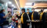 SEVP Micro & Consumer Finance Bank Mandiri Josephus K Triprakoso (dua kiri) melakukan pembayaran dengan menggunakan QRIS Livin (FOTO : Prayogi/Republika.)