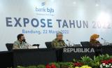 Dirut Bank BJB Yuddy Renaldi menyampaikan pemaparan saat Public Expose Tahun 2022 yang digelar secara hybrid, di Menara Bank BJB, Kota Bandung, Selasa (22/3/2022). Yuddy memaparkan keberhasilan Bank BJB mengarungi masa sulit sepanjang masa pandemi, menunjukkan performa yang menawan. Inilah yang memicu optimismenya menghadapi masa depan Bank BJB yang lebih cerah. Salah satu bentuk kepercayaan investor terhadap kinerja Bank BJB selama ini yaitu perkembangan Bank BJB kini sudah hadir di 14 Provinsi di Indonesia. (FOTO : Edi Yusuf/Republika)