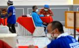 Pemeriksaan kesehatan warga binaan pemasyarakatan (WBP) sebelum vaksin booster Covid-19 di Lapas Kelas IIA Wirogunan, Yogyakarta, Rabu (23/3/2022). Sebanyak 354 WBP mengikuti vaksin booster Covid-19 atau vaksin tahap ketiga ini. Diharapkan dengan vaksin booster ini dapat menambah kekebalan WBP terhadap Covid-19 varian terbaru. (FOTO : Wihdan Hidayat / Republika)