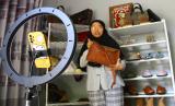 Perajin melakukan siaran langsung penjualan di pasar digital yang menyediakan akses ekspor di rumah produksi Eurika Crochet & Leather, Malang, Jawa Timur, Rabu (23/3/2022). Perajin sepatu kulit dan rajut tersebut berupaya memperluas jangkauan pemasaran serta meningkatkan penjualan produknya ke luar negeri dengan memperbanyak siaran langsung di pasar digital yang menyediakan akses ekspor (FOTO : ANTARA/Ari Bowo Sucipto)