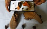 Perajin memotret sepatu kombinasi rajut dan kulit buatannya untuk diunggah di pasar digital yang menyediakan akses ekspor di rumah produksi Eurika Crochet & Leather, Malang, Jawa Timur, Rabu (23/3/2022). Perajin sepatu kulit dan rajut tersebut berupaya memperluas jangkauan pemasaran serta meningkatkan penjualan produknya ke luar negeri dengan memperbanyak siaran langsung di pasar digital yang menyediakan akses ekspor. (FOTO : ANTARA/Ari Bowo Sucipto)