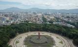 Foto udara Monumen Bandung Lautan Api di Tegallega, Bandung, Jawa Barat, Rabu (23/3/2022). Setiap tanggal 23 Maret warga Kota Bandung memperingati peristiwa Bandung Lautan Api yang terjadi pada tahun 1946 sebagai peristiwa yang bersejarah. (FOTO : ANTARA/Raisan Al Farisi)