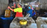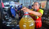 REPUBLIKA.CO.ID,KUDUS -- Pedagang melayani pembeli minyak goreng curah di Pasar Bitingan, Kudus, Jawa Tengah, Rabu (23/3/2022).