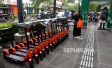 Beberapa skuter listrik disewakan di kawasan wisata Malioboro, Yogyakarta, Rabu (23/3/2022). Gubernur DIY Sri Sultan HB X menegaskan becak motor atau bentor dan skuter listrik tak boleh beroperasi di kawasan Malioboro Jogja. Menurut Sultan, kendaraan yang boleh beroperasi di Malioboro adalah becak kayuh dan andong sebagai angkutan tradisional yang sudah diatur di Perda DIY. DIY sudah memiliki Perda No.5/2016 tentang Moda Transportasi Tradisional Becak dan Andong. Sultan meminta Pemkot Jogja segera membereskan skuter listrik dan bentor yang masih berada di kawasan Malioboro. (FOTO : Wihdan Hidayat / Republika)