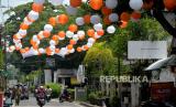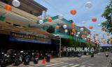 Lampu lampion terpasang menghiasi jalanan di depan Masjid Jogokariyan, Yogyakarta, Kamis (24/3/2022). Masjid Jogokariyan mulai bersiap menyambut Ramadhan, salah satunya adanya Kampung Ramadhan Jogokariyan (KRJ). Pasar sore bagi warga masyarakat yang menjual aneka makanan takjil untuk berbuka puasa. Selain KRJ di Masjid Jogokariyan juga diadakan berbuka puasa bersama selama Ramadhan. (FOTO : Wihdan Hidayat / Republika)