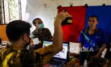 Petugas Disdukcapil melakukan perekaman E-KTP kepada warga binaan sosial di Panti Sosial Bina Laras Harpan Sentosa 2 Budi Murni, Cipayung, Jakarta, Kamis (24/3/2022). Disdukcapil Jakarta melakukan perekaman E-KTP kepada 92 warga binaan sosial meliputi pemeriksaan data diri dan pemeriksaan duplikat NIK yang bertujuan untuk keperluan pelayanan kesehatan. (FOTO : Republika/Putra M. Akbar)