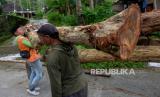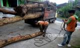Pekerja bersiap menaikkan kayu Sonokeling ke atas truk di Imogiri, Bantul, Yogyakarta, Kamis (24/3/2022). Mereka khusus mencari kayu Sonokeling diberbagai wilayah Yogyakarta. Kayu Sonokeling ini selanjutnya dibawa ke Surabaya untuk diproses sebelum diekspor. Harga kayu sonokeling cukup tinggi, untuk kayu yang bagus bisa mencapai ratusan juta. (FOTO : Wihdan Hidayat / Republika)
