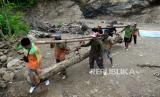 REPUBLIKA.CO.ID, BANTUL -- Pekerja mengangkut kayu Sonokeling secara tradisional di Imogiri, Bantul, Yogyakarta, Kamis (24/3/2022). Mereka khusus mencari kayu Sonokeling diberbagai wilayah Yogyakarta. Kayu Sonokeling ini selanjutnya dibawa ke Surabaya untuk diproses sebelum diekspor. Harga kayu sonokeling cukup tinggi, untuk kayu yang bagus bisa mencapai ratusan juta per batang pohon dewasa.
