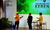 REPUBLIKA.CO.ID, BANDUNG -- Gubernur Jawa Barat Ridwan Kamil (kiri) bersama presenter Andi F Noya (kanan) berbincang dengan peserta program Petani Milenial di Auditorium Fakultas Ekonomi dan Manajemen IPB University, Dramaga, Kabupaten Bogor, Jawa Barat, Kamis (24/3/2022).
