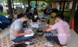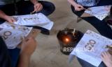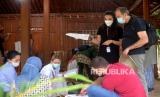 Rombongan delegasi forum EDM-CSWG G20 mencoba membatik di Giriloyo, Bantul, Yogyakarta, DI Yogyakarta, Kamis (24/3/2022). Kunjungan wisata peserta forum EDM-CSWG G20 Indonesia 2022 ini untuk mengenalkan budaya batik milik Indonesia yang diakui UNESCO sebagai warisan budaya tak benda. (FOTO : Wihdan Hidayat / Republika)