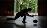 REPUBLIKA.CO.ID, KARANGANYAR -- Atlet Goalball National Paralympic Committee (NPC) Satrio Khoirul Usman melempar bola saat mengikuti latihan Pelatnas di Gor Baturan, Colomadu, Karanganyar, Jawa Tengah, Jumat (25/3/2022).