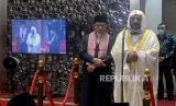 Menteri Urusan Islam, Dakwah dan Penyuluhan Arab Saudi Syaikh Dr. Abdullatif bin Abdulaziz Al-Syaikh didampingi Imam Besar Masjid Istiqlal Nasaruddin Umar memberikan pesan kepada umat islam usai melaksanakan Sholat Jumat di Masjid Istiqlal, Jakarta, Jumat (25/3/2022). Dalam kesempatan tersebut Abdullatif bin Abdulaziz Al-Syaikh mengajak umat Islam untuk taat kepada Allah, Rasullah, dan juga pemerintah. Dia juga memberikan hadiah kepada satu orang jamaah masjid Istiqlal berupa ibadah Haji.Prayogi/Republika. (FOTO : Prayogi/Republika.)