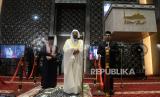 REPUBLIKA.CO.ID,JAKARTA -- Menteri Urusan Islam, Dakwah dan Penyuluhan Arab Saudi Syaikh Dr. Abdullatif bin Abdulaziz Al-Syaikh didampingi Imam Besar Masjid Istiqlal Nasaruddin Umar memberikan pesan kepada umat islam usai melaksanakan Sholat Jumat di Masjid Istiqlal, Jakarta, Jumat (25/3/2022).