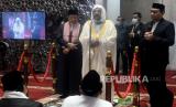 Menteri Urusan Islam, Dakwah dan Penyuluhan Arab Saudi Syaikh Dr. Abdullatif bin Abdulaziz Al-Syaikh didampingi Imam Besar Masjid Istiqlal Nasaruddin Umar memberikan pesan kepada umat islam usai melaksanakan Sholat Jumat di Masjid Istiqlal, Jakarta, Jumat (25/3/2022). Dalam kesempatan tersebut Abdullatif bin Abdulaziz Al-Syaikh mengajak umat Islam untuk taat kepada Allah, Rasullah, dan juga pemerintah. Dia juga memberikan hadiah kepada satu orang jamaah masjid Istiqlal berupa ibadah Haji. (FOTO : Prayogi/Republika.)