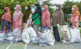 REPUBLIKA.CO.ID,KARAWANG -- Warga mengantre untuk menimbang sampah anorganik bawaannya di Bank Sampah Wibisana Nusantara, Telukjambe Timur, Karawang, Jawa Barat, Sabtu (26/3/2022).