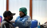 Warga mengikuti vaksin booster Covid-19 di Dinas Kesehatan Yogyakarta, Senin (28/3/2022). Pasca terbitnya aturan vaksin booster Covid-19 menjadi syarat mudik lebaran 2022, warga mulai menyerbu lokasi vaksinasi Covid-19. (FOTO : Wihdan Hidayat / Republika)