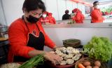 Para kader PDI Perjuangan mengikuti acara demo memasak tanpa minyak goreng di Sekolah Partai PDIP, Jakarta, Senin (28/3/2022). Kegiatan demo masak ini digelar untuk menunjukkan betapa Indonesia adalah negara kaya pangan, dan banyak cara untuk mengolah bahan pangan menjadi masakan-masakan yang lezat dan bergizi.Prayogi/Republika. (FOTO : Prayogi/Republika. )