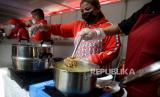 Para kader PDI Perjuangan mengikuti acara demo memasak tanpa minyak goreng di Sekolah Partai PDIP, Jakarta, Senin (28/3/2022). Kegiatan demo masak ini digelar untuk menunjukkan betapa Indonesia adalah negara kaya pangan, dan banyak cara untuk mengolah bahan pangan menjadi masakan-masakan yang lezat dan bergizi.Prayogi/Republika. (FOTO : Prayogi/Republika.)