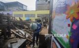 Pelajar melihat ruangan kelas yang ambruk di SD Negeri Ciheuleut 1, Kota Bogor, Jawa Barat, Selasa (29/3/2022). Sebanyak dua ruangan kelas di sekolah tersebut hancur tertimpa material atap bangunan karena kondisi konstruksi rangka yang sudah keropos dan cuaca yang deras disertai angin kencang. Republika/Putra M. Akbar (FOTO : Republika/Putra M. Akbar)