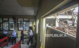 REPUBLIKA.CO.ID, BOGOR -- Dua ruangan kelas ambruk di SD Negeri Ciheuleut 1, Kota Bogor, Jawa Barat, Selasa (29/3/2022). Sebanyak dua ruangan kelas di sekolah tersebut hancur tertimpa material atap bangunan karena kondisi konstruksi rangka yang sudah keropos dan hujan yang deras disertai angin kencang.