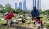 REPUBLIKA.CO.ID, JAKARTA -- Warga berziarah di makam keluarganya di tempat pemakaman umum (TPU) Karet Kebembem, Tanah Abang, Jakarta, Selasa (29/3/2022). Banyak warga yang melakukan ziarah kubur menjelang bulan Ramadhan.