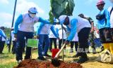 Wakil Menteri Pekerjaan Umum dan Perumahan Rakyat (PUPR) Jhon Wempi Wetipo (tengah) menanam pohon saat memperingati puncak Hari Air Dunia (HAD) di Bendungan Randugunting, Japah, Blora, Jawa Tengah, Rabu (30/3/2022). Jhon Wempi Wetipo menanam bibit pohon dan menebar benih ikan pada peringatan Hari Air Dunia yang ke-30 dengan tema (FOTO : ANTARA FOTO/Yusuf Nugroho)