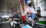 REPUBLIKA.CO.ID,JAKARTA -- Seorang petugas mengisi bahan bakar minyak (BBM) jenis Pertamax ke salah satu kendaraan di stasiun pengisian bahan bakar umum (SPBU) di kawasan Kuningan, Jakarta, Rabu (30/3/2022).