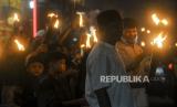 REPUBLIKA.CO.ID, BOGOR -- Sejumlah umat muslim melakukan pawai obor di Jalan Raya Puncak, Kabupaten Bogor, Jawa Barat, Rabu (30/3/2022).