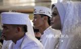 REPUBLIKA.CO.ID, BANDUNG -- Sejumlah calon pengantin menunggu giliran untuk menjalani prosesi akad saat Nikah Massal di Masjid Al Ukhuwah, Jalan Wastukencana, Kota Bandung, Kamis (31/3/2022). Menjelang bulan suci Ramadhan 1443 H, DKM Masjid Al Ukhuwah bekerja sama dengan pihak swasta menggelar pernikahan massal bagi enam orang pasangan pengantin dengan membebaskan biaya nikah kepada setiap mempelai.