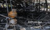 Tabung gas yang hangus terbakar di kawasan Monas, Jakarta, Kamis (31/3/2022). Sebanyak 172 kios lenggang Jakarta terbakar yang diduga akibat korsleting listrik dengan kerugian diperkirakan mencapai Rp 1,2 miliar. Republika/Putra M. Akbar (FOTO : Republika/Putra M. Akbar)
