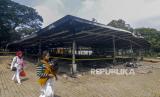 Sejumlah warga berjalan di dekat puing-puing kios pasca kebakaran di kawasan Monas, Jakarta, Kamis (31/3/2022). Sebanyak 172 kios lenggang Jakarta terbakar yang diduga akibat korsleting listrik dengan kerugian diperkirakan mencapai Rp 1,2 miliar. Republika/Putra M. Akbar (FOTO : Republika/Putra M. Akbar)
