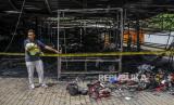 REPUBLIKA.CO.ID, JAKARTA -- Pedagang melihat kondisi puing-puing kios pasca kebakaran di kawasan Monas, Jakarta, Kamis (31/3/2022). Sebanyak 172 kios Lenggang Jakarta terbakar yang diduga akibat korsleting listrik dengan kerugian diperkirakan mencapai Rp 1,2 miliar.