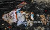 Sejumlah baju dagangan yang telah terbakar di kawasan Monas, Jakarta, Kamis (31/3/2022). Sebanyak 172 kios lenggang Jakarta terbakar yang diduga akibat korsleting listrik dengan kerugian diperkirakan mencapai Rp 1,2 miliar. Republika/Putra M. Akbar (FOTO : Republika/Putra M. Akbar)