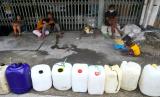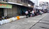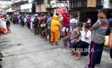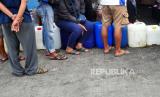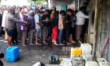 Warga antre membeli minyak goreng curah di Pasar Johar, Semarang, Jawa Tengah, Kamis (31/3/2022). Lebih dari dua pekan pencabutan HET subsidi minyak goreng antrean pembeli minyak goreng curah masih terjadi. Bahkan di Pasar Johar warga rela antre sejak pukul 12 malam. (FOTO : Wihdan Hidayat / Republika)