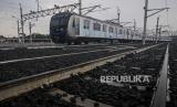 Salah satu rangkaian MRT yang terparkir di Depo MRT Lebak Bulus, Jakarta, Kamis (31/3/2022). Pemeliharaan dan perawatan menyeluruh kereta Ratangga MRT Jakarta meliputi pemeriksaan harian, bulanan dan pengecekan dan perawatan besar yang dilakukan selama 4 tahun sekali seperti overhaul atau turun mesin. Republika/Putra M. Akbar (FOTO : Republika/Putra M. Akbar)