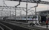 REPUBLIKA.CO.ID,JAKARTA -- Salah satu rangkaian MRT yang terparkir di Depo MRT Lebak Bulus, Jakarta, Kamis (31/3/2022).
