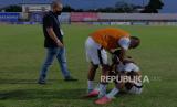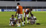 REPUBLIKA.CO.ID, DENPASAR -- Sejumlah pesepak bola Persipura Jayapura tertunduk usai menghadapi Persita pada pertandingan Liga 1 di Stadion Kompyang Sujana, Denpasar, Bali, Kamis (31/3/2022). Persipura Jayapura dipastikan terdegradasi dari Liga 1 Indonesia 2021/2022.