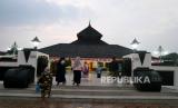 Wisatawan berkeliling di kawasan Masjid Agung Demak, Jawa Tengah, Kamis (31/3/2022). Masjid Agung Demak adalah salah satu masjid tertua yang ada di Indonesia. Masjid ini dipercayai pernah menjadi tempat berkumpulnya para ulama (wali) yang menyebarkan agama Islam di tanah Jawa yang disebut dengan Walisongo. Pendiri masjid ini diperkirakan adalah Raden Patah, raja pertama dari Kesultanan Demak sekitar abad ke-15 Masehi. Saat ini Masjid Agung Demak menjadi ikon wisata Kabupaten Demak yang menjadi tujuan pariwisata. (FOTO : Wihdan Hidayat / Republika)